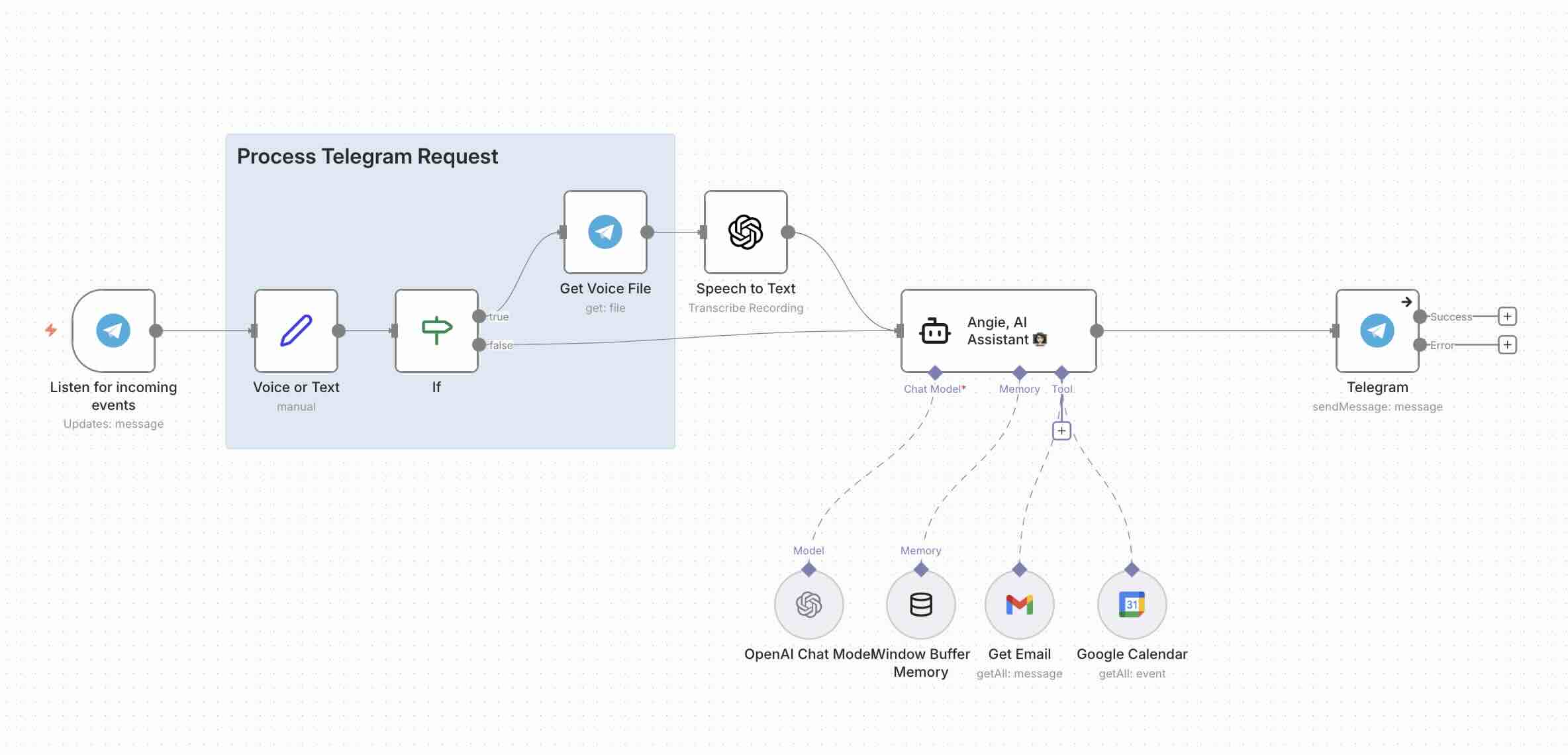 Screenshot showing a simple Agent built using n8n